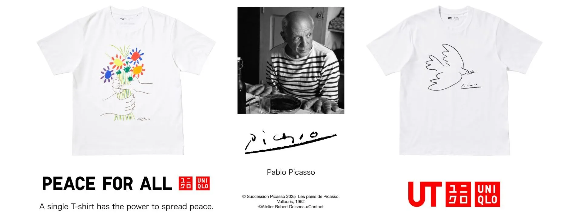 UNIQLO is teaming up with the legendary Pablo Picasso to launch a stunning collection of graphic tees this March! The collaboration features iconic works from the master of modern art, including the symbolic “Dove of Peace” and the powerful “Bouquet of Friendship.” These tees are not only a fashion statement but also a chance to support global peace, as all profits from the PEACE FOR ALL design go to humanitarian causes.