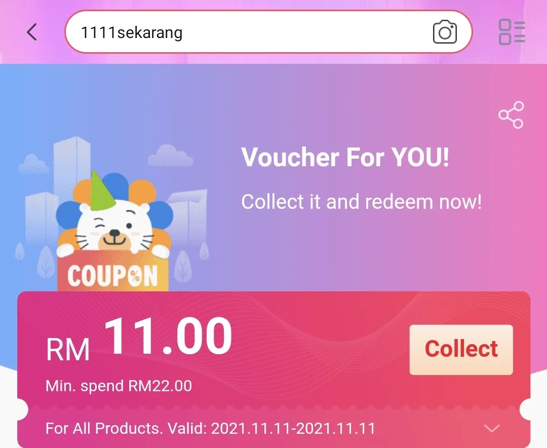 The ‘Lazada Belanja You RM11’ vouchers will give Lazada users RM11 off with a minimum spend of RM22 – in other words, 50% off!* Malaysians can collect these vouchers by searching the code “1111Sekarang” on the Lazada app via the search bar function. Only limited number of vouchers are available for collection, so collect now!