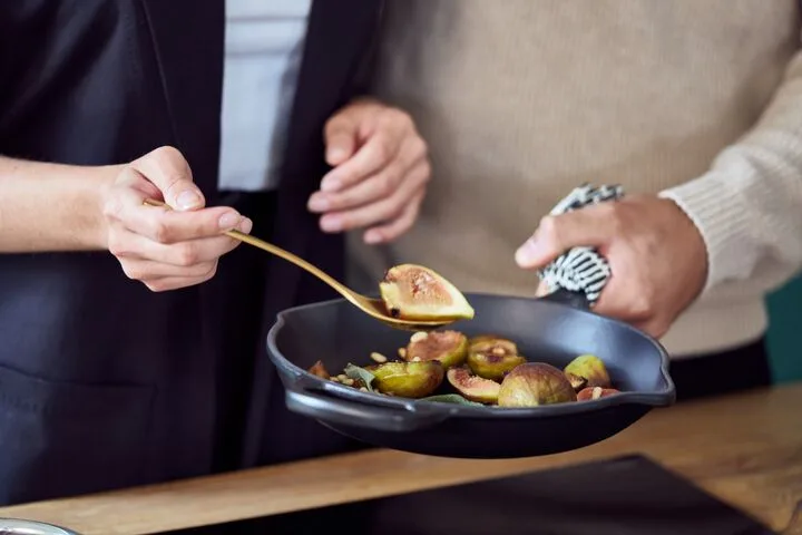 The traditional option for elegant kitchen-to-table serving is without a doubt, the Le Creuset oval French oven. Their enamelled cast iron ovens come in a variety of capacities and have an extended form to allow larger slices of meat. Everything you cook in this oven – whether you stew, braise, simmer, or bake, can and will taste delicious as well as look delightful when served at the table.