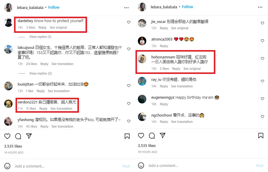 Her response garnered mixed replies from netizens. While some agreed with her words and cheered her on, others were of a different mind. “Know how to protect yourself,” one netizen urged with others advising caution. “(You’re) self-destructing, no one cares,” another said snidely. However, a few felt that Lebara had benefited from the incident as many now knew of her.