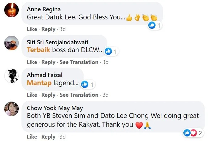 Politics aside, we are truly grateful that MPs like Mr. Sim and Datuk Lee Chong Wei are doing what they can to help those who need it.