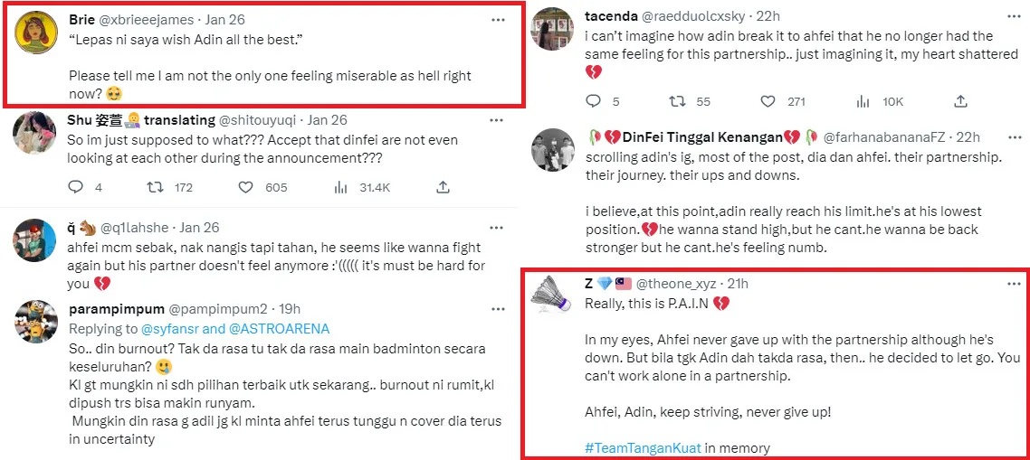 “Adin (Izzuddin) said he’s not (feeling this partnership anymore), so that was a signal for me,” the 26-year-old stated. Sounding like he was holding back tears, Sze Fei continued with, “I wish Adin all the best.” Notably enough, the duo did not look at each other during the exchange. Sze Fei also added a quiet, “We just want to do our best and (we’re) not blaming anyone.”