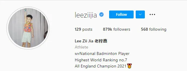 If you take a peek at Zii Jia’s Instagram account, he keeps his bio fairly updated. Apparently, he’d changed the name on his biography at one point to Kobeh Lee. However, recently, he replaced it with his real name and added his name in Mandarin beside it.