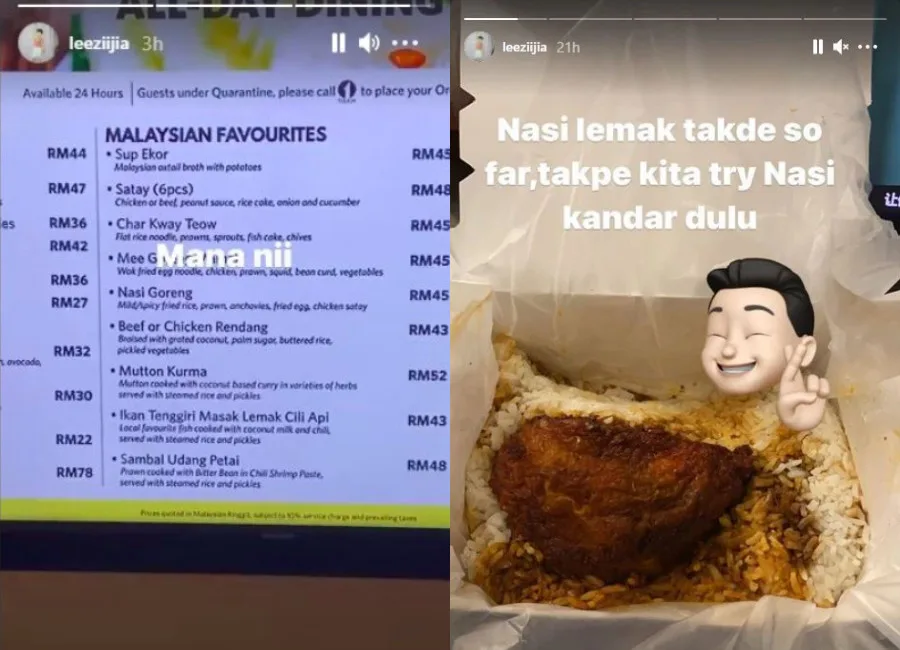 However, much to the 23-year-old’s disappointment, the hotel where he’s placed under quarantine do not provide the beloved local dish in their menu! Through a post made on his IG Story, Zii Jia then revealed that he had ordered nasi kandar instead.