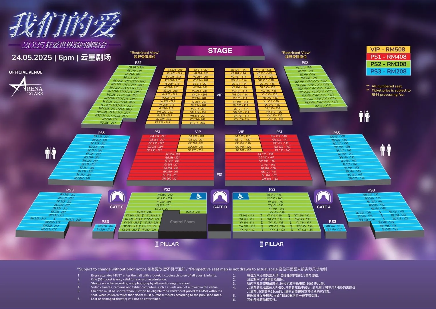 - Ticket Prices: RM508 (VIP), RM408 (PS1), RM308 (PS2) and RM208 (PS3)