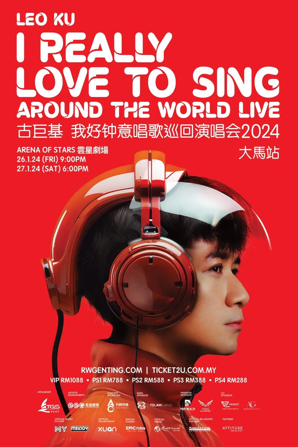 Brought to you by TOP GALLANT SHOW (超帆娱乐主办) and ACO Media (有种传媒), here are the details of Leo Ku’s “I Really Love To Sing” Live in Malaysia: