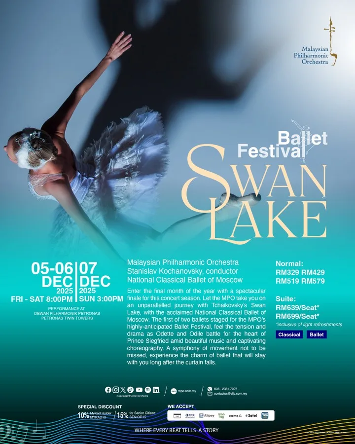 Let the Malaysian Philharmonic Orchestra take you on an unparalleled journey with Tchaikovsky’s Swan Lake, with the acclaimed National Classical Ballet of Moscow. Click here to get tickets!