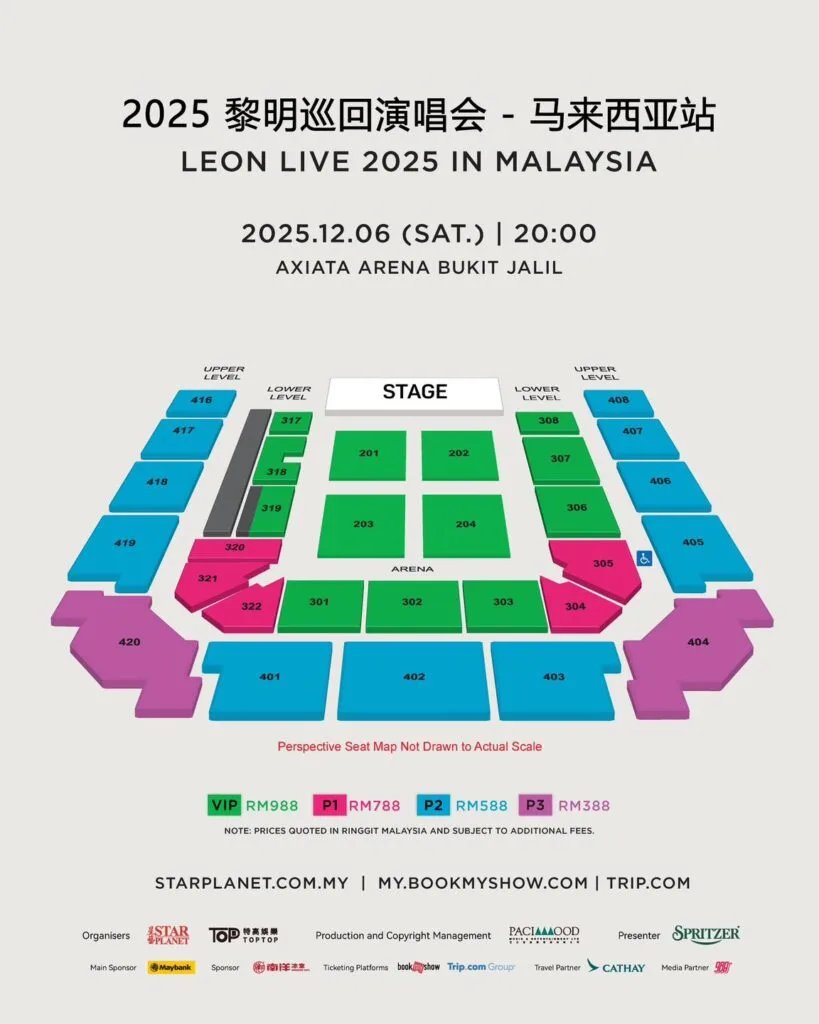 - Ticket Prices: VIP: RM988, P1: RM788, P2: RM588, P3: RM388