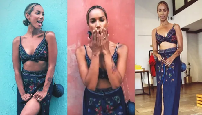 In 1 of her snapshots, the songstress subtly showed off her massive diamond engagement ring. Clad in a floral embroidered denim 2-piece, which highlighted her slender figure,Lewis had her ring hand clutched unto her skirt.