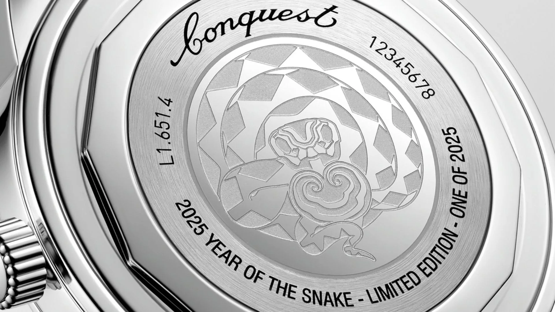 In celebration of the Year of the Wood Snake, Longines has engraved this unique design on the back of a special Conquest Heritage model, limited to 2,025 pieces.