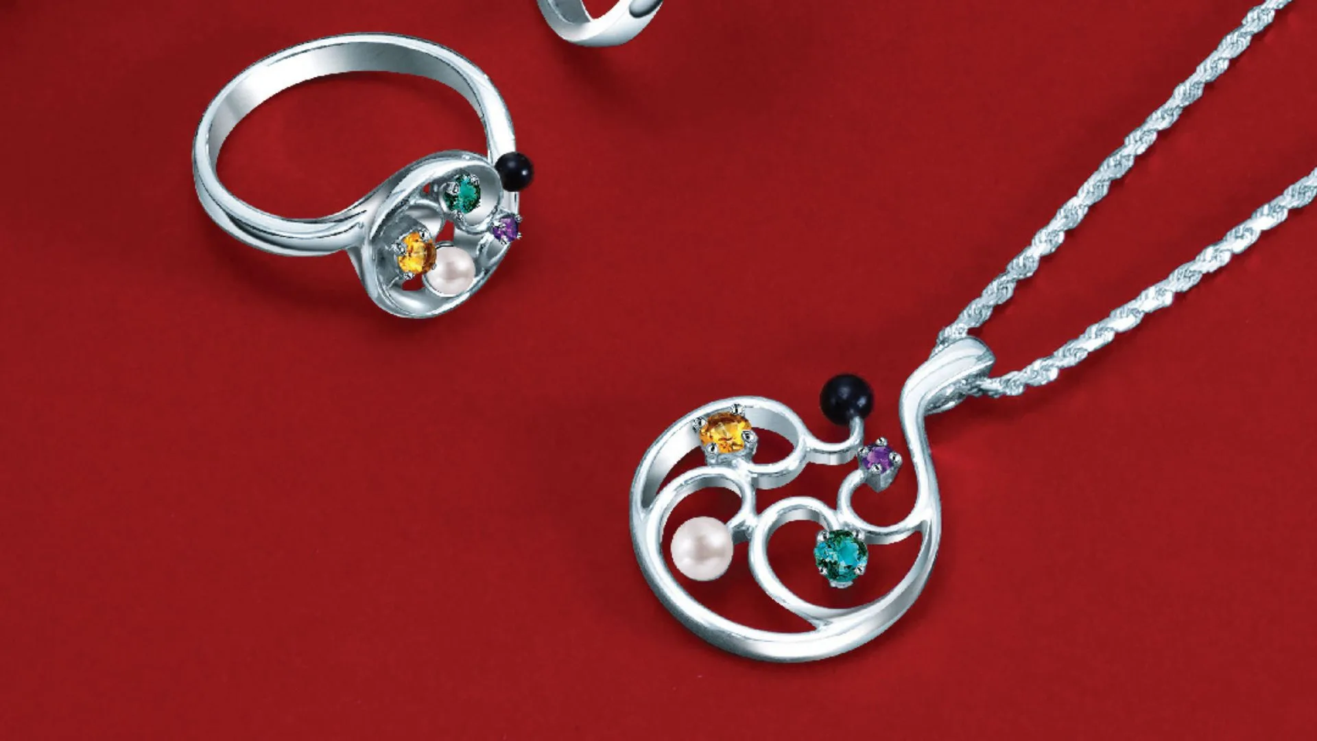 Citrine represents fire, symbolising warmth and abundance, while pink sapphire embodies water, bringing fluidity and peace. Onyx stands for wood, reflecting strength and growth, while pearl represents metal, symbolising purity and resilience. Peridot, representing earth, evokes renewal and vitality. Together, these gemstones create a harmonious balance, making the collection a meaningful and auspicious gift for the season of new beginnings.