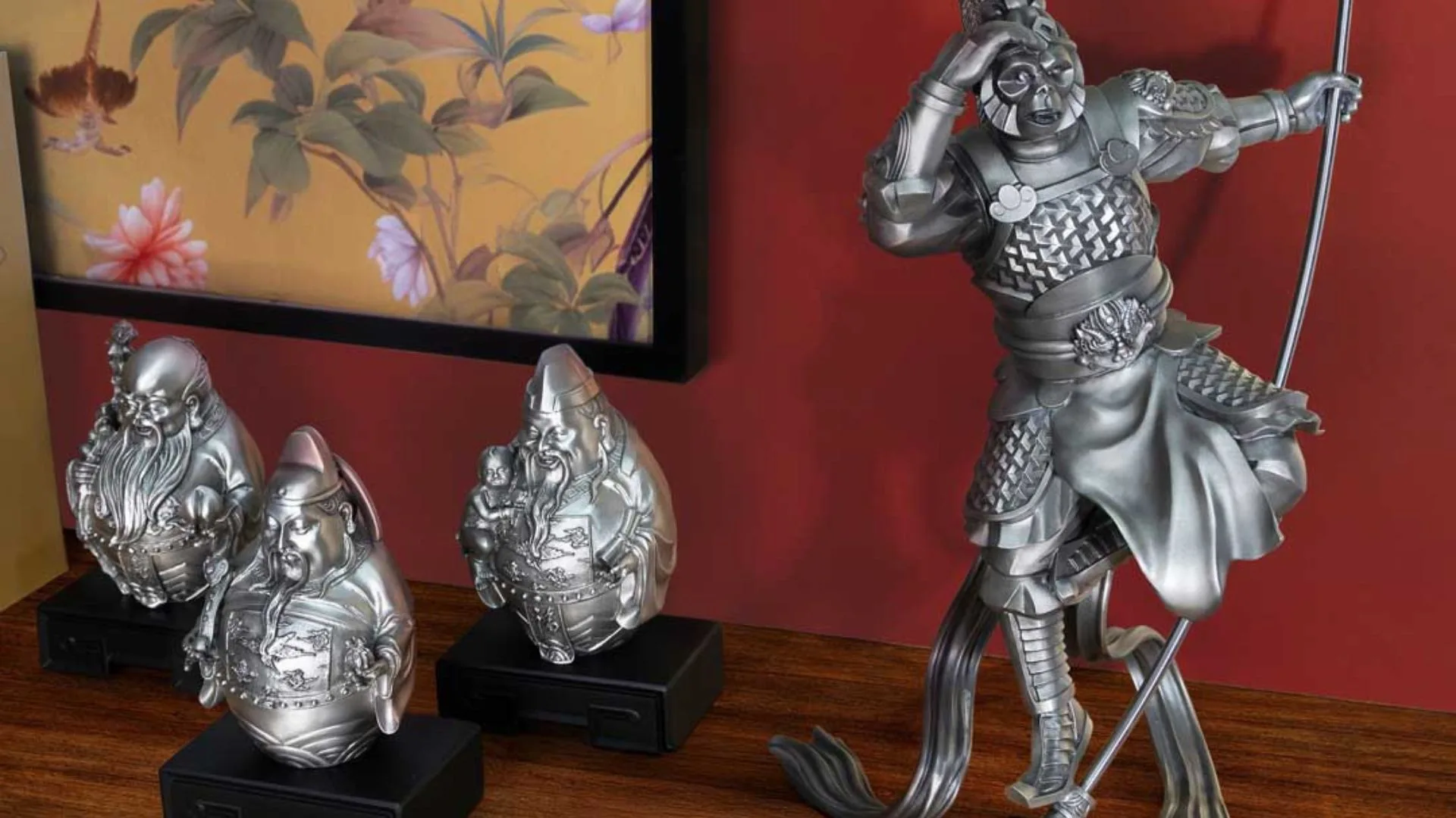 Complementing this, the Fu Lu Shou figurines represent the three-star deities of fortune (Fu), prosperity (Lu), and longevity (Shou), offering blessings of a well-rounded and abundant life.