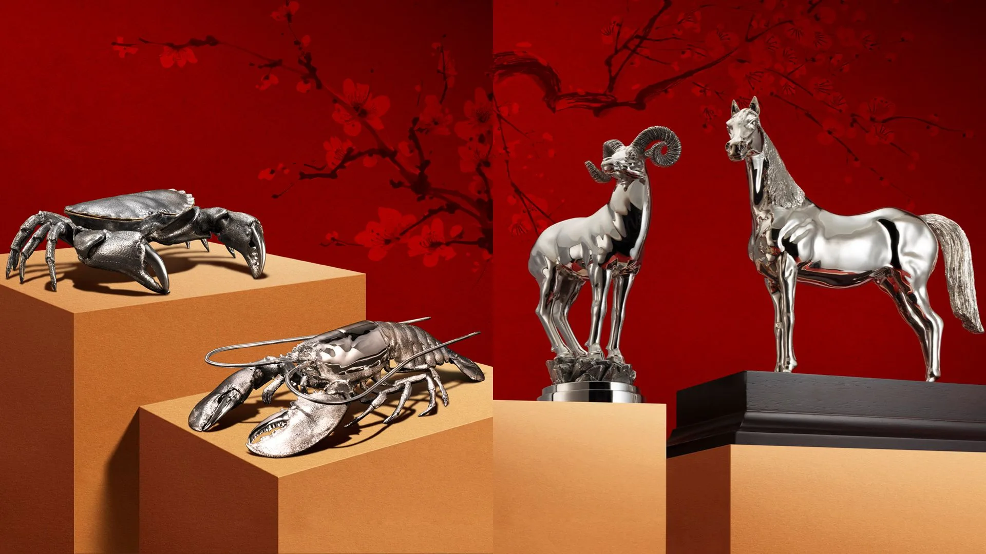 Welcome prosperity and positive energy into your home this Lunar New Year with elegant, auspicious sterling silver designs that celebrate the season in style. The Crab and Lobster serving dishes are perfect for gracing any banquet table. These lifelike pieces open to reveal an opulent interior gilded in 24K gold, a nod to the prosperity of the year ahead.
