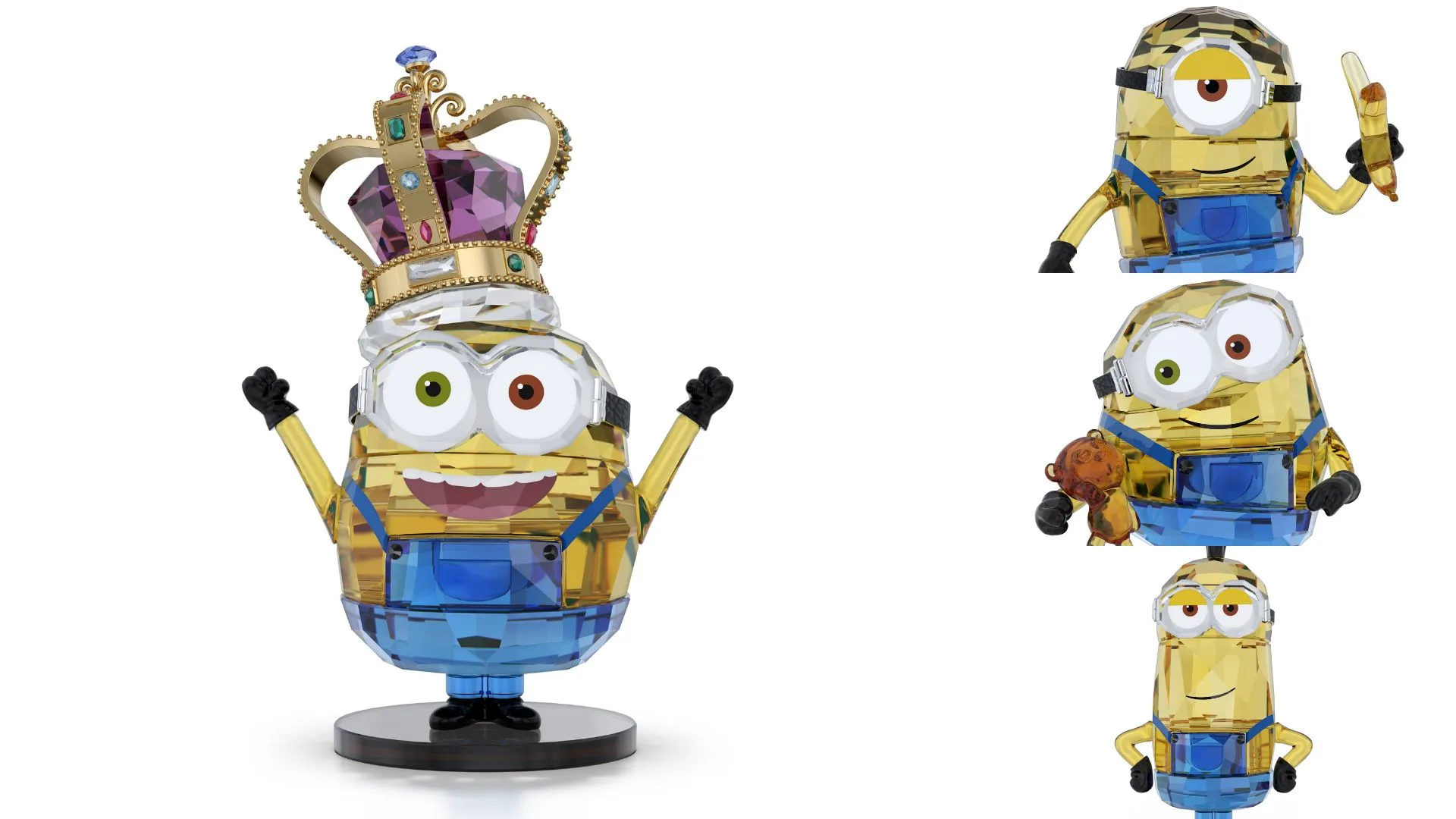 The Minions collection is completed by the large King Bob figurine, crafted with 1,026 precision-cut facets and wearing a gold-tone metal and purple crystal crown. Themed packaging in the Minions signature shade of yellow provides the perfect final addition to this highly collectible range.