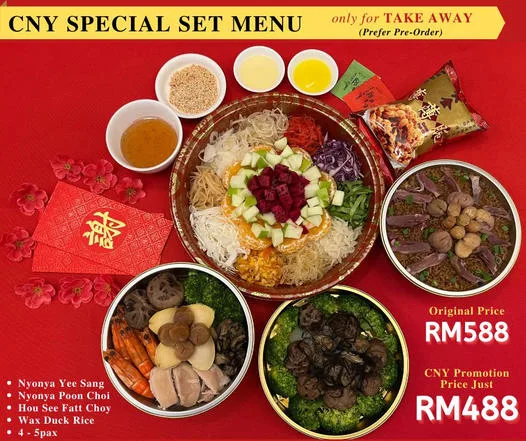 Celebrating Chinese New Year also means giving yourself a chance to admire and cherish the unique culture of Malaysia’s Peranakan. Surround yourself with architecture reminiscent of classic Melaka Nyonya shophouses while feasting on an array of authentic Nyonya delights. Just so you know, the Nyonya Poon Choi in their CNY Special Menu is a must-try! This pot of hearty Poon Choi is generously filled with Premium Abalone, Japanese Scallops, Fresh Prawns, Dried Oysters, Steamed Chicken, Premium Mushroom, Pacific Clams, Sea Asparagus, White Radish & Broccoli. You may also wouldn’t want to miss out on their best seller – Wax Duck Rice & Yee Sang Salmon and Jelly Fish!