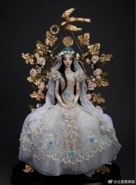 Li Chen also surprised Bingbing with princess bride doll fashioned in her likeness, specially for the occasion. The stunning doll was custom made by Canadian artist Marina Bychkova. According to NetEase, Bychkova doesn’t typically take requests to customised her creations, but after months of persuasion, she agreed to Li Chen’s demands.