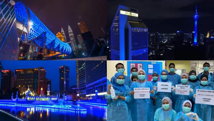 From 30th April till 3rd May 2020, government buildings, commercial buildings and some roads in the Federal Territories will be illuminated with blue lights from 10:30pm till 1am next morning.