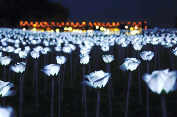 These roses have no scent, but it’ll most certainly form an impressive backdrop with a spectacular sea of illuminated white roses made with light-emitting diode, or LED.