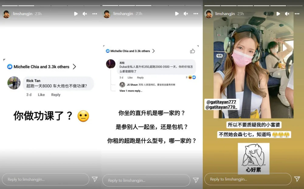 So far, at the time of writing, Shang Jin has released six episodes of the series. In total, the YouTuber claims to have spent over RM200,000 on his trips with Gatita. From his titles, it’s easy to see why. In each episode, Shang Jin has listed off a few expensive activities he did with Gatita. For instance, in his fifth video, he explained he had booked a hotel in Dubai with an ocean view which cost RM5,766, rented a private helicopter for RM7,500 and a supercar which cost RM8,000 for a day, and spent RM2,500 to skydive.