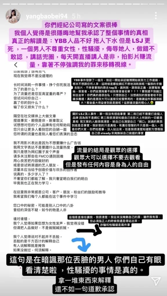 The content creator made it clear that she had once believed what she was told. However, she doesn’t know what to believe anymore. Should she believe YBB who accused Shangjin of sexual harassment? Or should she trust her ex-boyfriend who keeps denying it and insisting on his innocence?