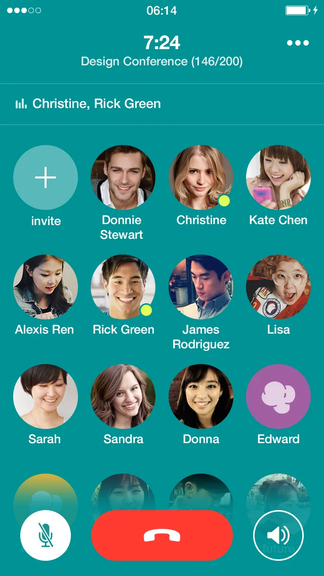 During group calls, users can see all the other call members’ icons, and tell who is talking via the green dots that light up in the lower right-hand corner of current talking users’ icons.
