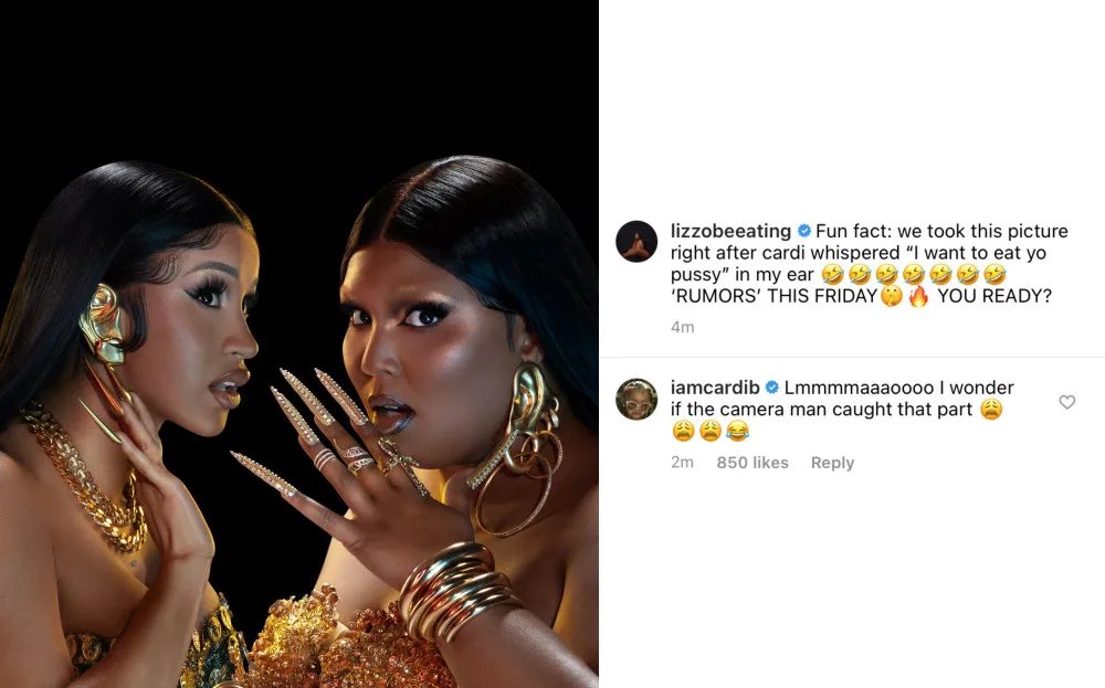 Of course, the pair are no strangers to dirty talk. Prior to the release of their single, Lizzo shared what went down during the photoshoot of their “Rumors” artwork. “Fun fact: we took this picture right after Cardi whispered ‘I want to eat yo p**sy in my ear’,” the 33-year-old R&B singer wrote.