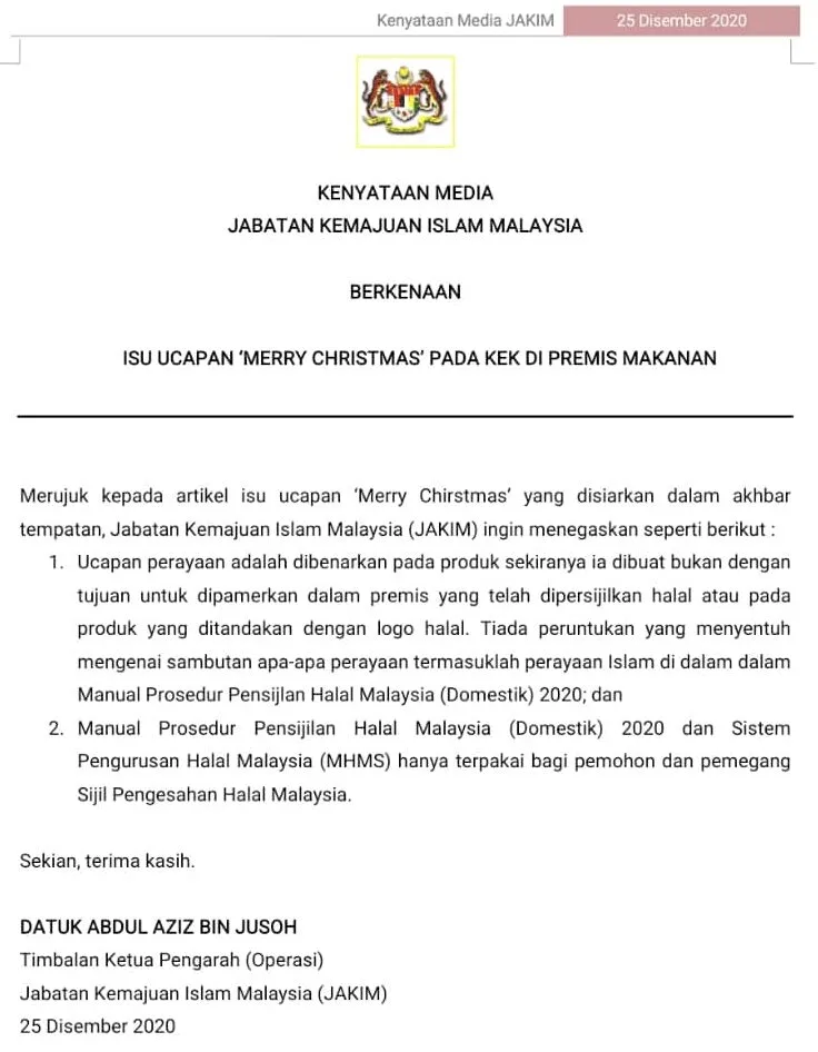However, it is worth noting that halal-certified food establishments are prohibited from exhibiting or displaying food products with “Merry Christmas” greetings written on them to avoid risking getting their halal certification revoked for non-compliance. While this information was not specified in their recent social media postings, it was mentioned in a statement released by JAKIM back in 2020.