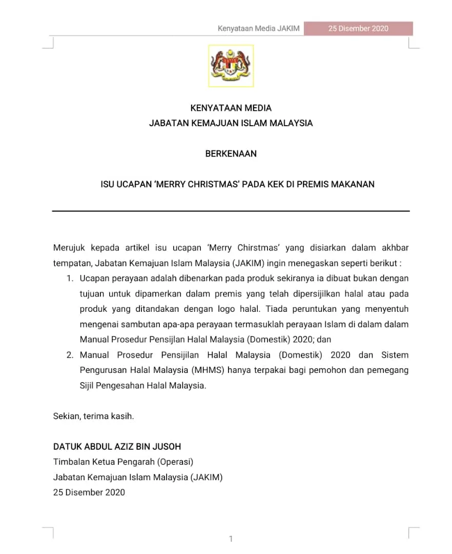 The memo caused quite a stir among netizens who believed the banning of the words was unreasonable. After the post went viral, the Department of Islamic Development Malaysia (JAKIM) quickly released a statement to address the issue. The federal agency posted on their Facebook page to clarify that there are no restrictions for bakeries to write festive greetings on cake orders.