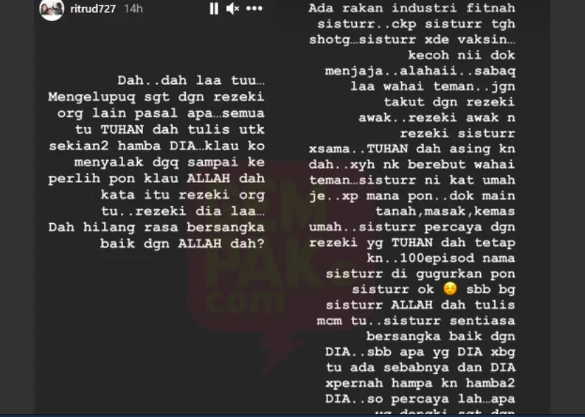 Another actress that has succumbed to a pit of anti-vax ideologies! Rita Rudaini gained flak from netizens after she uploaded a series of Instagram stories that defended people who refused to take the Covid-19 vaccine. Just like Lana Nodin, she does not seem to comprehend the reason as to why people who were against the vaccine were called anti-vaxxers. She also thinks that the elderly should not get the injection unless they hoped to travel.