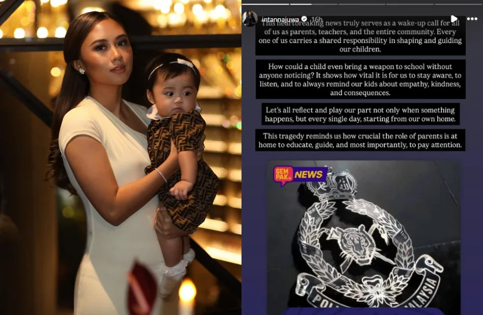 Actress Intan Najuwa, who is also a mother, expressed her concern over the tragic incident. “How can a child bring a weapon to school without anyone noticing? It shows how vital it is for us to stay aware, to listen, and to always remind our children about empathy, kindness, and consequences. This tragedy reminds us how crucial a parent’s role is at home — to educate, guide, and, most importantly, pay attention,” she wrote.