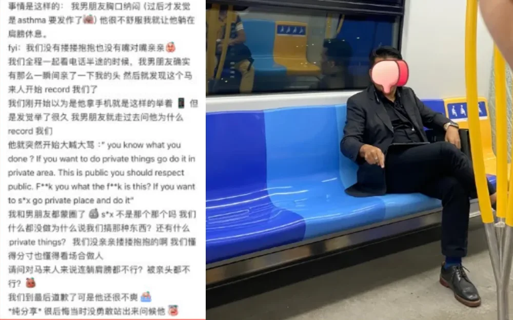 The story reportedly appeared on 小红书 (Xiao Hong Shu). According to the girl, her boyfriend had complained his chest was feeling uncomfortable, allegedly due to an asthma attack, so she got him to lay his head on her shoulder to rest. While watching something on their phones, her boyfriend kissed her on the head. “Then I realised that this Malay guy (had) started recording us,” she stated.