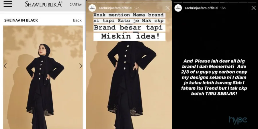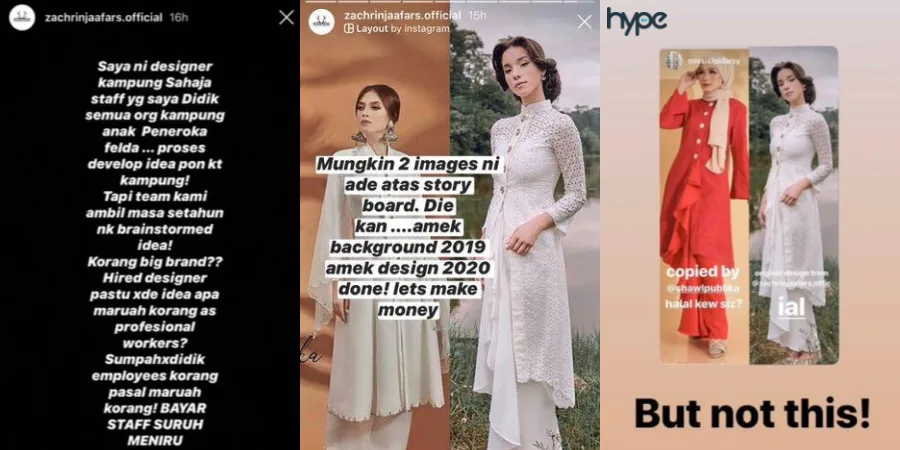 Most recently, a local fashion designer Zachrin Jaafar took to his Instagram Story to call out a major fashion label Shawlpublika for allegedly copying the designs from one of his Raya collection.