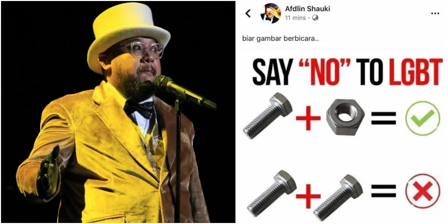 Local comedian Afdlin Shauki was under fire yesterday for posting a distasteful post on Facebook regarding LGBT with the caption, “Let the photo speak for itself”.