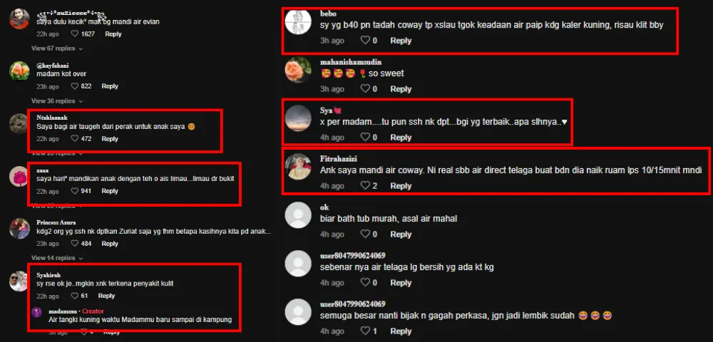 In response to the video, many parents commended Azri’s action, saying he’s only doing the best for his child. Some parents also shared about their children, saying they shower with filtered water because of their sensitive skin. A few parents even poke fun at the situation, joking that their kids bathe in bean sprout water and iced lemon tea.