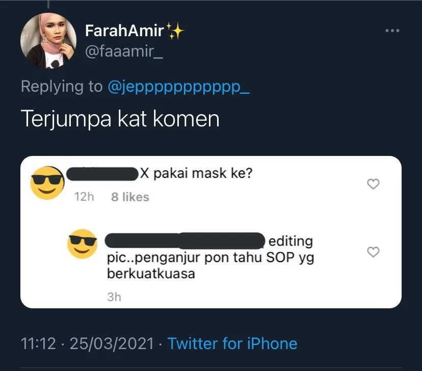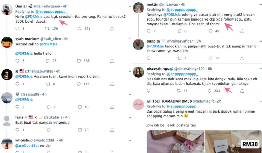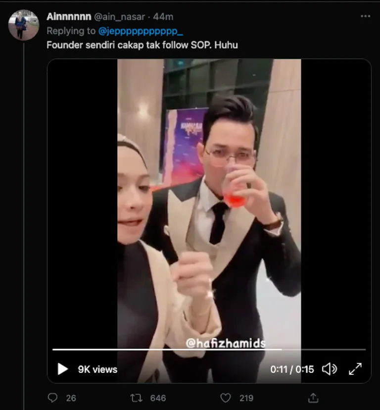 Soon after that, many netizens began unravelling more shocking revelations regarding the incident. As dished by Twitter user @ain_nasar, even the founders of the local brand admitted (albeit sarcastically) that the event was conducted without complying to the SOPs! The guy quipped, “If y’all got compounded, feel free to claim the money from her,” to which the woman in the clip responded, “So, we can call it the ‘Glorious Raya Cluster’.”