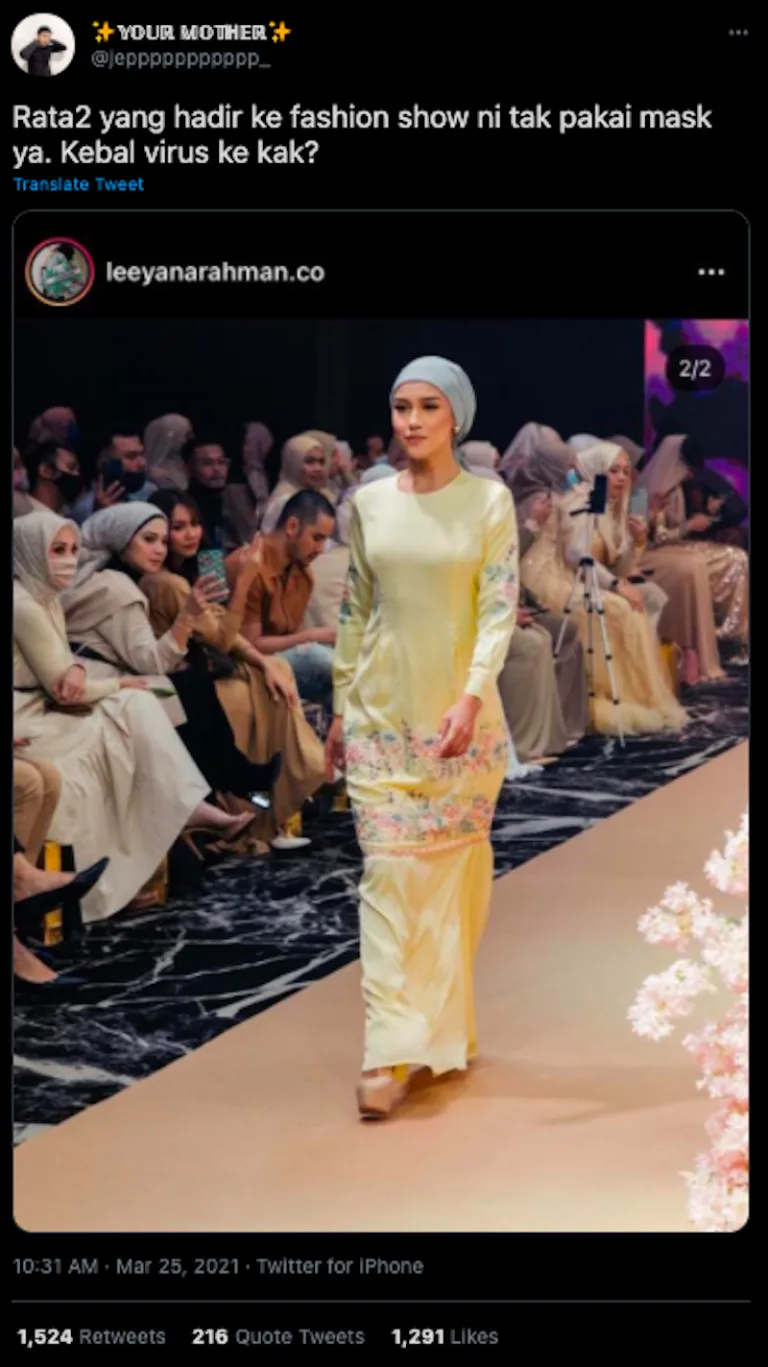A couple of a local fashion brand founders found themselves in hot water this week after people discovered that they had allegedly flouted the conditional movement control order (CMCO) SOPs during a fashion show for their latest Raya 2021 collection a few days ago.