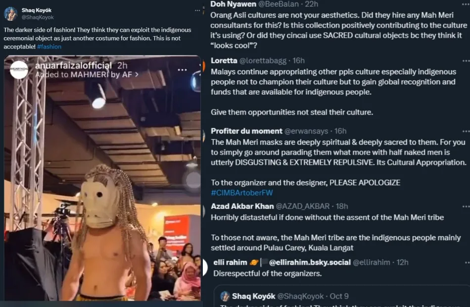 Although the fashion show went smoothly, many did not appreciate how the culture was represented. As seen in the screenshots above, netizens took to Twitter and Instagram to call out the designer for cultural appropriation. Some accused the public figure and organiser of exploiting the Mah Meri mask, an indigenous ceremonial object, as a costume for fashion.
