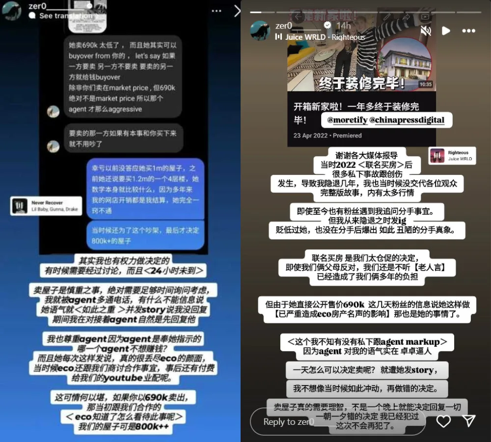 In her original statement, Ashley also claimed that her ex was ignoring her messages and calls regarding the home. Zer0 has since spoken about the issue through Instagram Stories, sharing his side of the argument. In his post, the social media personality explained he couldn’t reply to Ashley’s calls as he was busy dealing with issues about selling the home, adding that it’s a serious matter that needs to be handled carefully.