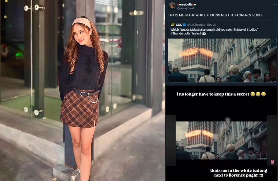 Yesterday (Tuesday, 24th September), content creator Syaza Atheerah, known as @/geekyhawt on her socials, received the green light to share her involvement in the upcoming 2025 superhero film. According to the influencer’s posts on Twitter and Instagram Stories, she was the woman wearing the white hijab standing next to Florence Pugh in the teaser during the scene in which the HSBC tower exploded.