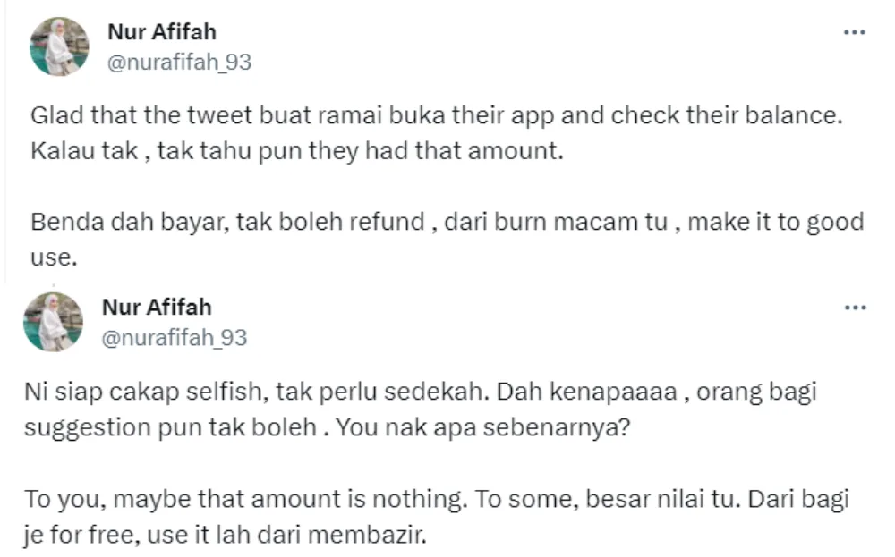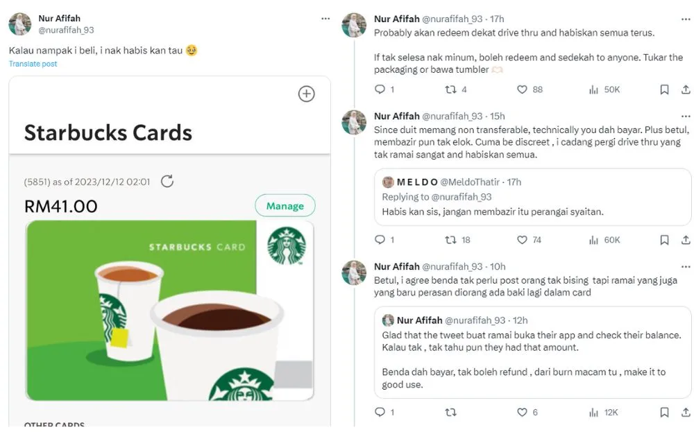 Despite the backlash, Afifah stood her ground and clarified that she would put her remaining credit to good use. She mentioned that she understands the criticism of her decision but added that it’s better than letting her money go to waste. Others also agreed that it would be best to use up any remaining Starbucks credit, regardless of the amount, as it would be foolish and against Islamic beliefs to waste money in any form.