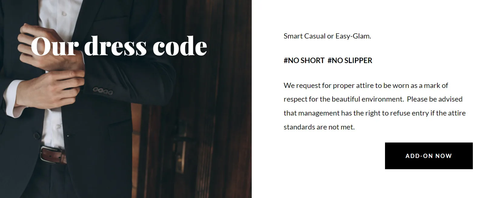 It’s common courtesy to dress appropriately when dining out, especially when it’s a fancy establishment. Malaysia is no exception. A restaurant’s dress code is usually reflective of its ambiance and brand.