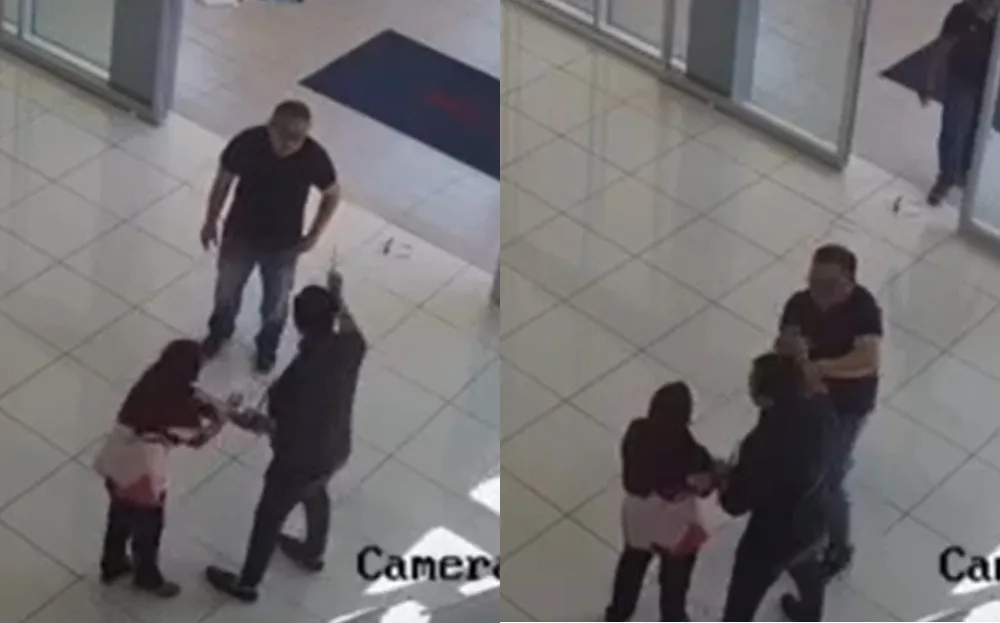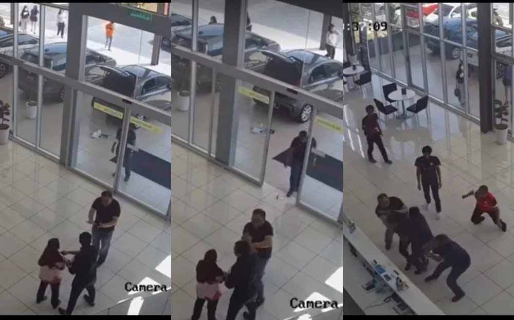 A CCTV video of a hostage situation at what looks to be a car showroom recently went viral on social media. The incident, dated 18th March, reportedly occurred in Beranang, Semenyih in Selangor. The footage started with a man backing away from another woman while holding a Malay lady hostage. From his movements, he was allegedly holding a knife to his hostage’s back.