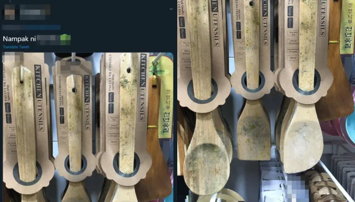 A Malaysian shopper was recently looking to buy some cooking utensils to bake cookies in lieu of the upcoming Hari Raya celebration. However, the lady was shocked to find that many of the wooden spoons and spatula covered in dust and mould.