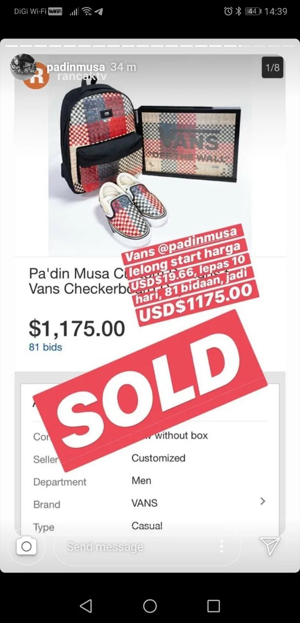Most recently, Pa’din shared on his Instagram the good news that his very own signature Vans collection has been sold online on eBay for a whopping price of RM4902.22!