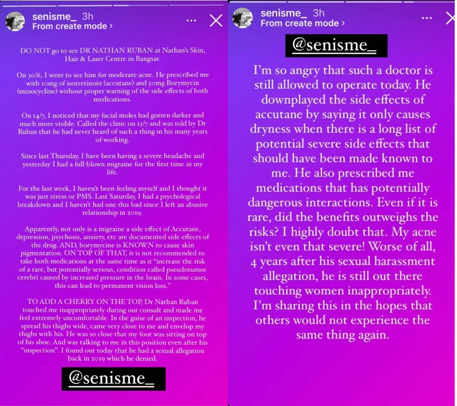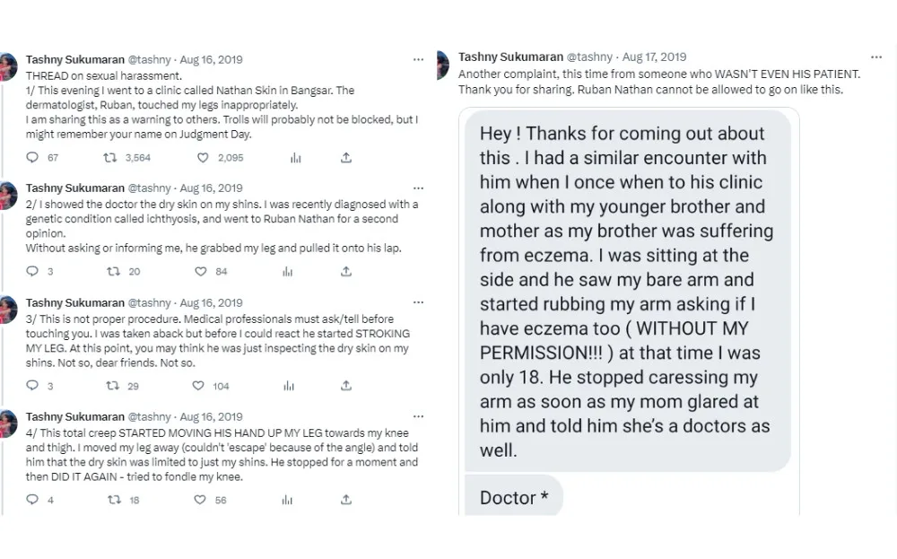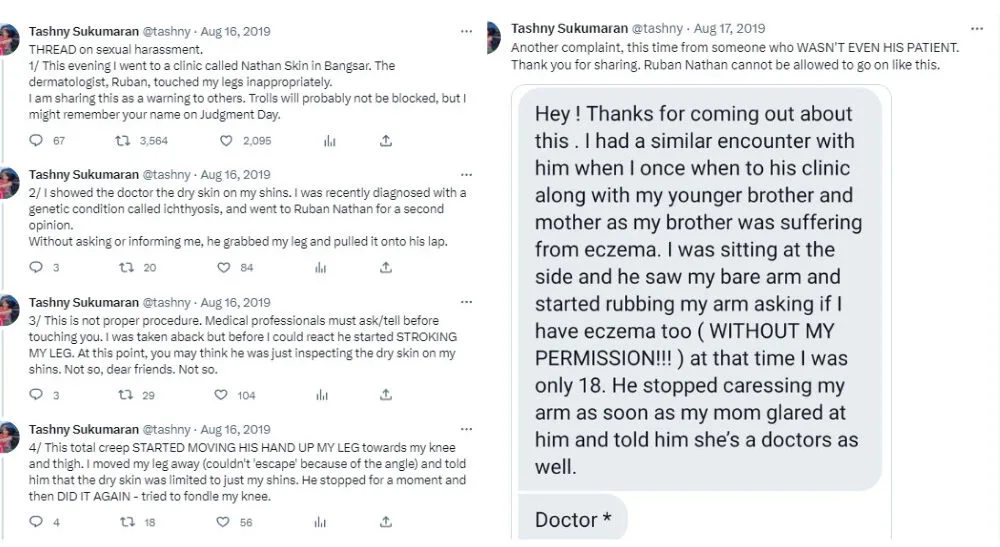 Lim’s story would not be the first allegation of sexual harassment against the doctor because a journalist, Tashny Sukumaran, also accused him of inappropriately touching her during her visit in 2019. The aforementioned doctor had denied the claims despite other victims sharing similar experiences of being sexually harassed by the dermatologist.