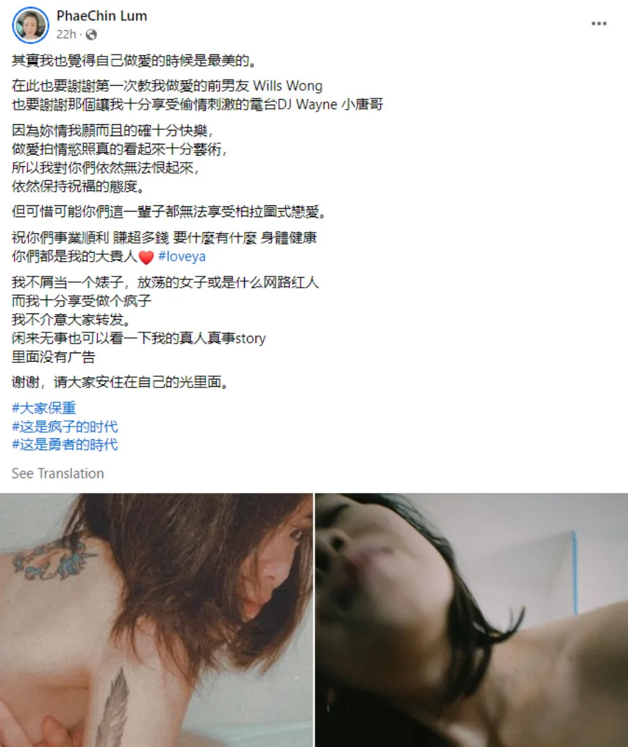 The shocking Facebook post was from a local woman known as PhaeChin Lum, who wrote about her experience of being intimate with her previous partners. In her post, she wrote, “I feel like I’m the most beautiful when I’m making love”, before thanking her ex-boyfriend for teaching her how to have sex for the first time. However, the next sentence caught netizens’ eye as it mentions a former Chinese radio personality, DJ Wayne Thong (唐纬颜).