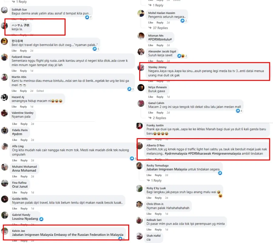 The post has since gone viral with many local netizens agreeing with the admin that people (especially those from Western countries) should not be travelling without any financial preparations. Most criticised the foreigners for their actions with one even suggesting that they should work for their money rather than beg for it on the streets. A few even tagged the Royal Malaysian Police (PDRM), Malaysian Immigration Department and the Embassy of the Russian Federation in Malaysia in hopes that they’d take action against these travellers.