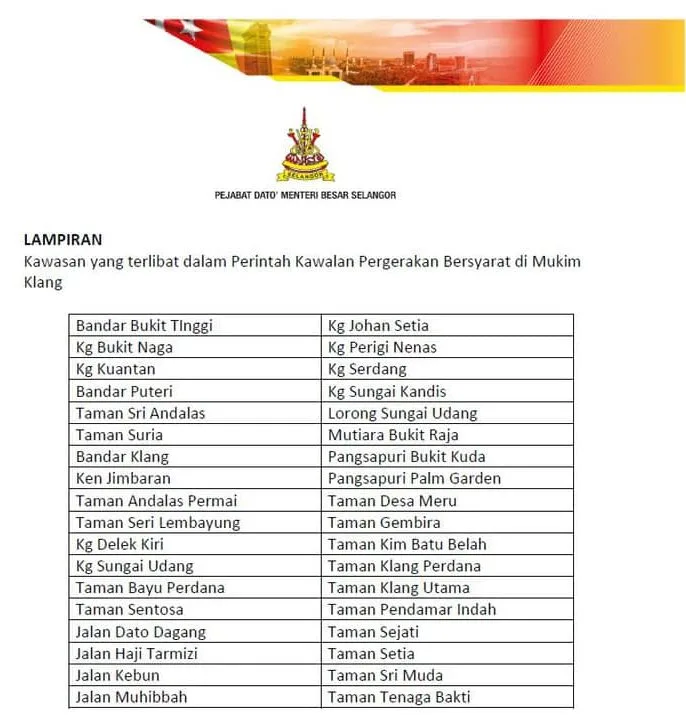 Senior Minister for Security Datuk Seri Ismail Sabri Yaakob has just announced minutes ago that Klang together with 3 districts in Sabah will officially undergo conditional movement control order (CMCO).