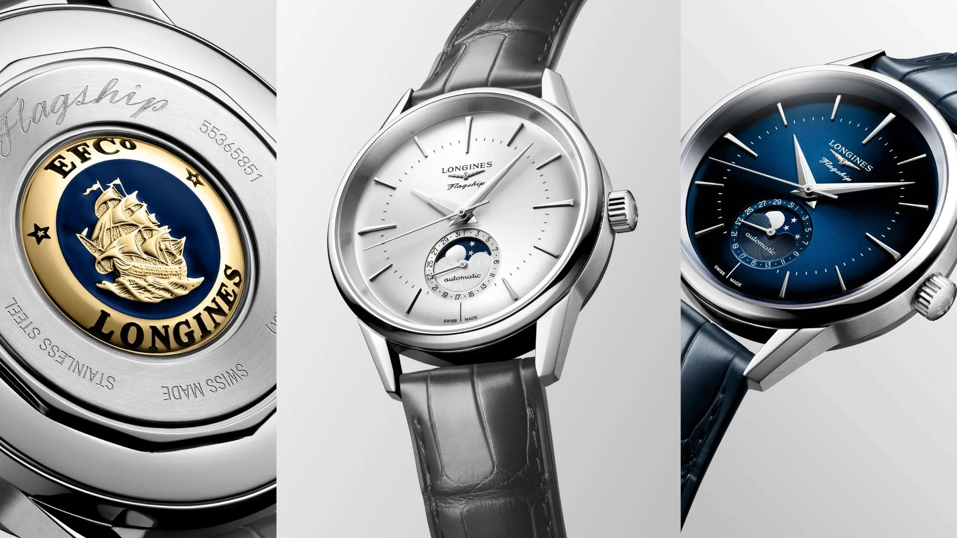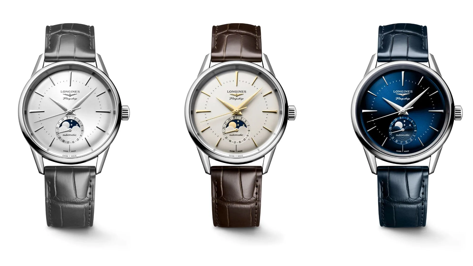 Fitted with a new Heritage pin buckle, the brown, grey, or blue leather straps offer a perfect fit and comfort while matching the colours of the dials. A striking tribute to the line’s historic model, the new Flagship Heritage watches combine technical expertise with timeless elegance.