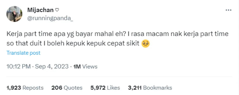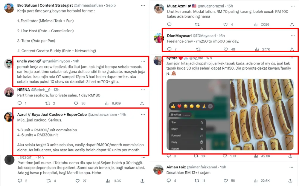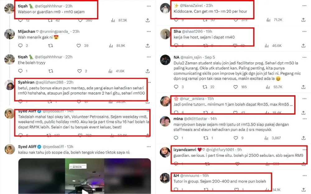 Twitter user @/runningpanda_ started the conversation by asking netizens what part-time job pays the highest, with many chiming in on their suggestions.